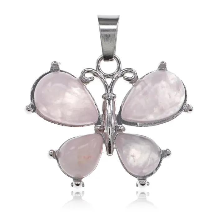 Кулон Бабочка, 2х3 см, розовый кварц BJK351-01
