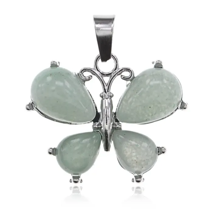 Сувенирный кулон в форме бабочки из бижутерного сплава с вставкой из натурального нефрита.