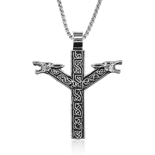 Кулон с символом руны Альгиз на цепочке. Изделие из бижутерного сплава.