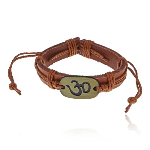 Браслет из натуральной кожи и металла с символом Ом.