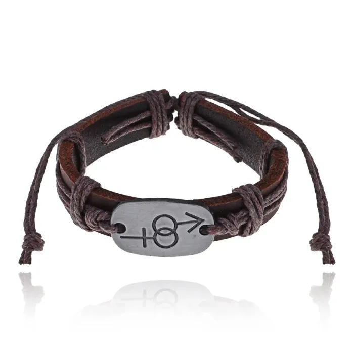 Браслет из натуральной кожи с металлическими элементами и регулируемым размером.