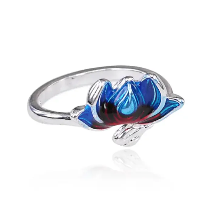 Безразмерное кольцо Лотос — сувенирное украшение из металла с покрытием под серебро и эмалью, шириной 10 мм.