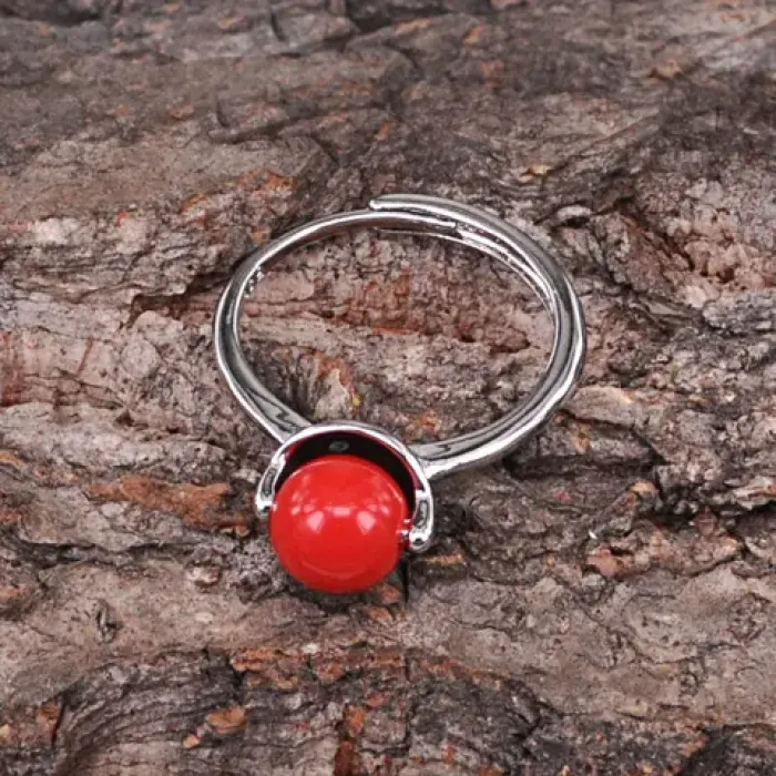Безразмерное кольцо с вращающимся шариком, цвет красный KL269