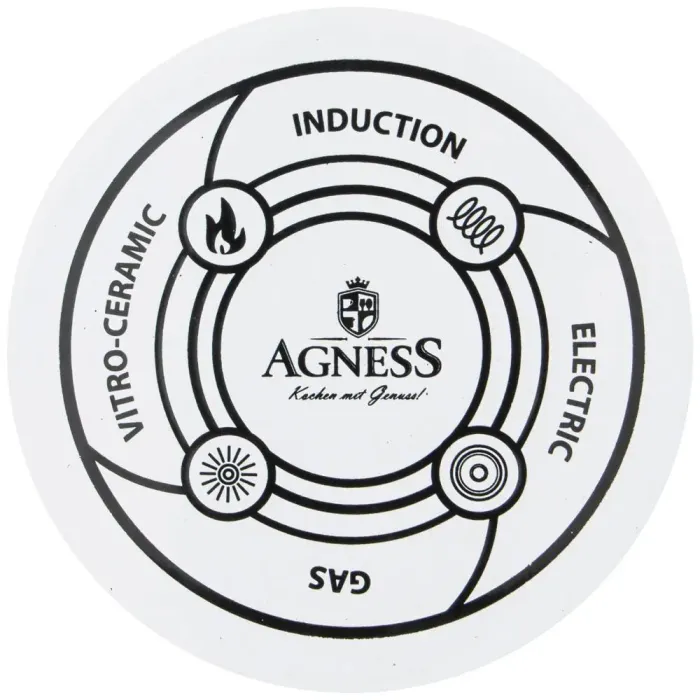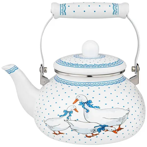 Эмалированный чайник Agness из серии «Гуси» предназначен для кипячения воды на всех типах плит, включая индукционные. Изделие отличается трёхслойным эмалевым покрытием и ручным нанесением декора.