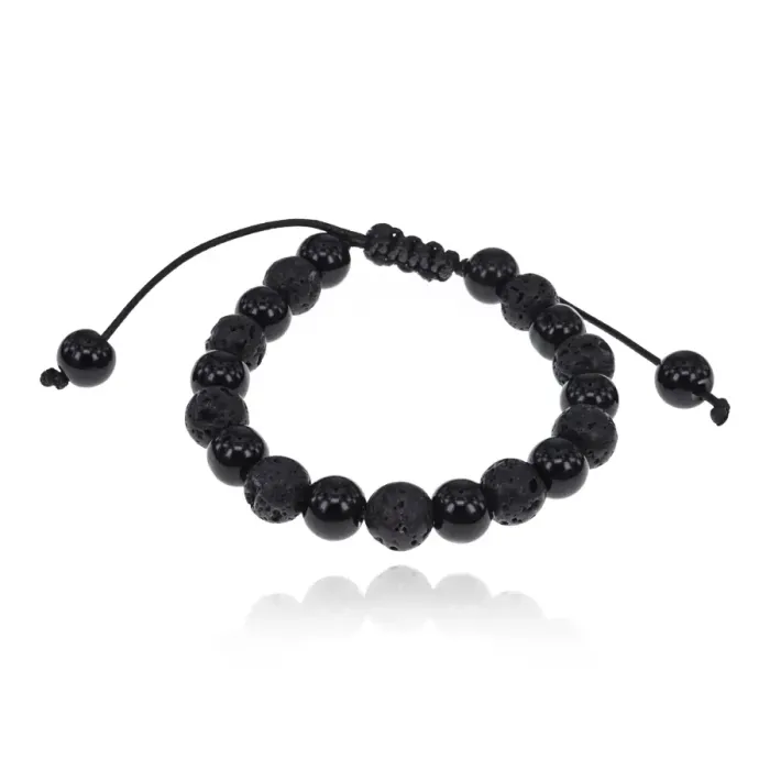Браслет, лава + черный агат, 8мм BJBS-367-02