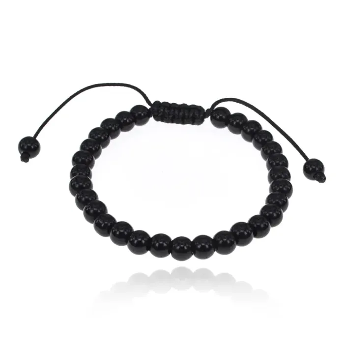 Браслет из синтетического чёрного агата с диаметром бусин 6 мм и регулируемой застёжкой.