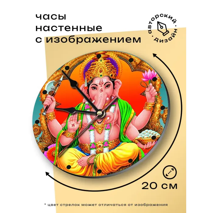 Настенные часы с изображением Ганеши. Циферблат выполнен из вспененного пластика ПВХ.
