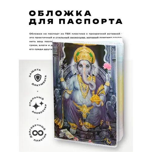 Обложка для паспорта Ганеш — это стильный и практичный аксессуар, который не только защищает документ, но и подчеркивает индивидуальность. Изготовленная из прозрачного ПВХ-пластика, она обеспечивает надежную защиту от повреждений и загрязнений. Основные особенности: