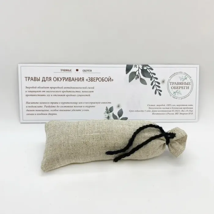 Трава для окуривания Зверобой — это мощный природный инструмент, традиционно используемый в ритуалах для защиты от негативного воздействия. С её помощью создаётся атмосфера безопасности и гармонии в пространстве. Основные особенности: - Эффективная защита: Зверобой известен своими свойствами противостоять злу и магическому вредительству. - Лёгкость использования: Для окуривания достаточно насыпать немного травы в курильницу или несгораемую ёмкость, поджечь и раздувать до состояния тления. - Экологически чистый состав: Трава состоит из 100% зверобоя, льна и шерстяной нити, что делает продукт безопасным для здоровья. - Долговечность: Срок годности составляет 3 года с момента изготовления (март 2023 года). Для достижения максимального эффекта рекомендуется уделить особое внимание углам помещения, окнам и входным дверям при окуривании дымом. Трава станет отличным дополнением к любому ритуалу или элементом уюта в доме и может служить небольшим подарком для ценителей натуральных средств.