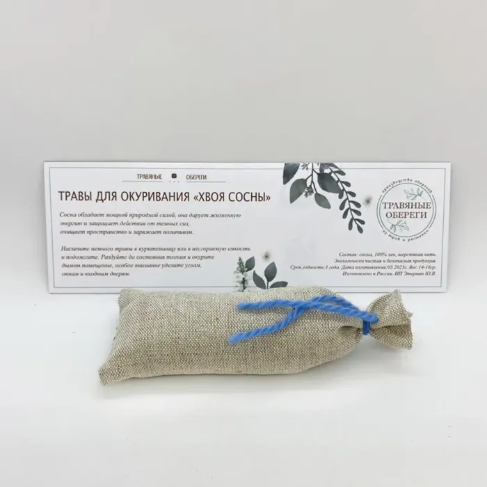 Трава для окуривания Хвоя Сосны — натуральный продукт, наполняющий пространство свежестью и энергией. Аромат хвои сосны очищает атмосферу, создавая ауру спокойствия и защиты. Основные особенности: - Сосна дарует жизненную силу и защищает от негативных влияний. - Окуривание хвойной травой способствует созданию позитивного настроения в помещении. - В состав входят экологически чистые компоненты: хвоя сосны, 100% лён и шерстяная нить. - Удобная упаковка содержит около 15 г продукта для регулярного использования. Советы по использованию: рекомендуется насыпать небольшое количество хвои в курительницу или несгораемую ёмкость, поджигать и окуривать помещение, уделяя внимание углам и дверям. Эта трава станет отличным дополнением к ритуалам очищения пространства или создаст уютную атмосферу в доме, а также может быть замечательным подарком для ценителей натуральных ароматов.