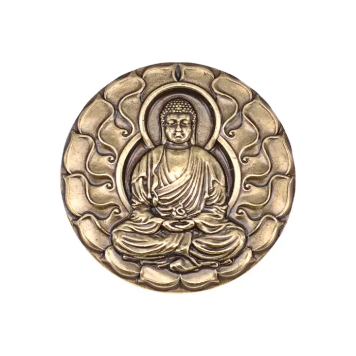 Значок с изображением Будды из латуни и металла с золотым покрытием.