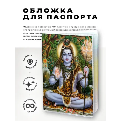Обложка для паспорта Шива — это стильный и практичный аксессуар, который не только защищает документ, но и подчеркивает индивидуальность. Изготовленная из прозрачного ПВХ-пластика, она позволяет видеть паспорт в оригинальном виде и при этом надежно его защищает от повреждений.