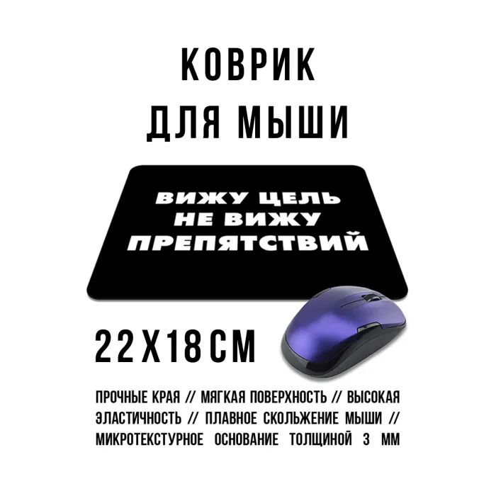 Коврик для мыши 22х18см Вижу цель, не вижу препятствий KMP633