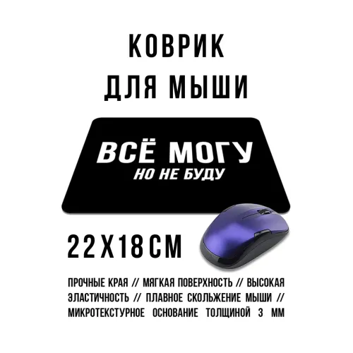 Коврик для мыши с прорезиненной основой и изображением фразы "Всё могу, но не буду".
