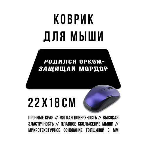 Коврик для мыши 22х18см Родился орком - защищай мордор KMP637