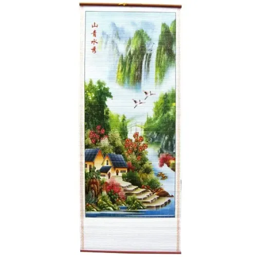 Панно - свиток Журавли над деревней 78х32см бумага E229