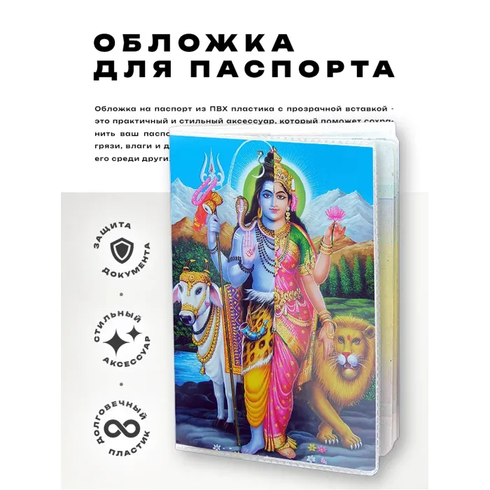 Обложка для паспорта Ардханарешвара — это стильный и практичный аксессуар, который не только защищает документы, но и подчеркивает индивидуальность. Изготовленная из прозрачного ПВХ-пластика, она обладает высокой прочностью и долговечностью.