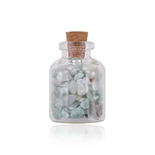 Сувенирный минерал зелёный авантюрин в стеклянном флаконе с пробкой.