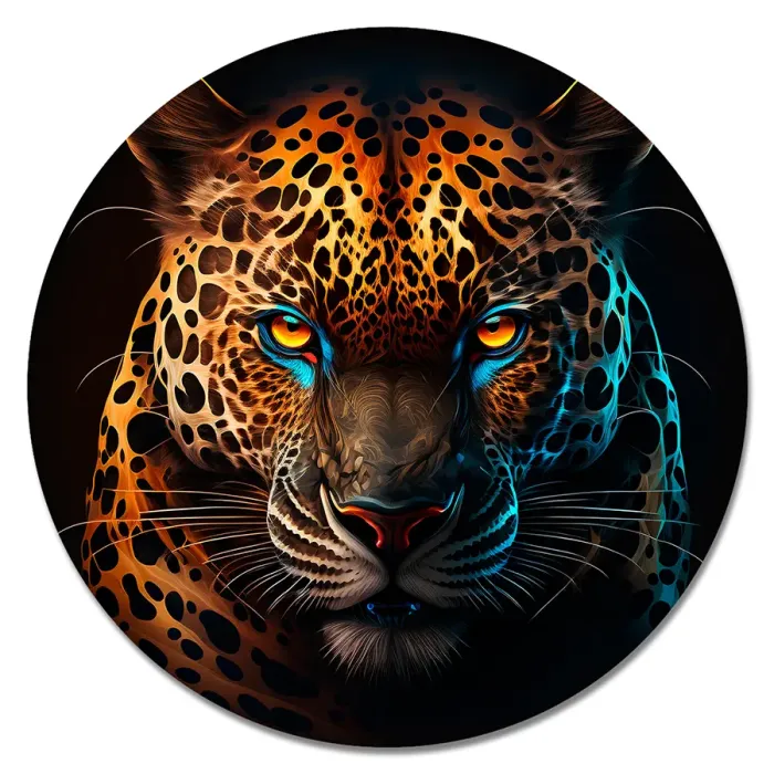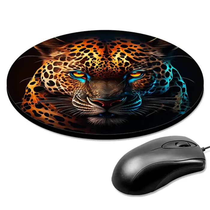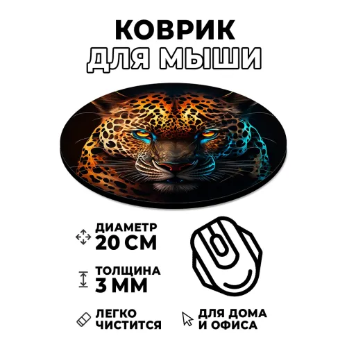 Коврик для компьютерной мыши круглой формы с изображением леопарда.