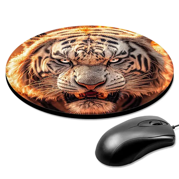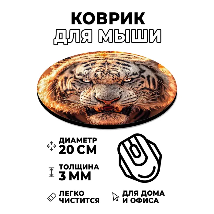 Коврик для компьютерной мыши с изображением белого тигра. Диаметр 20 см.