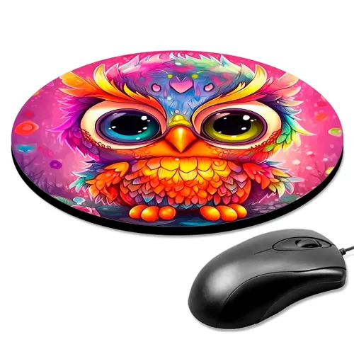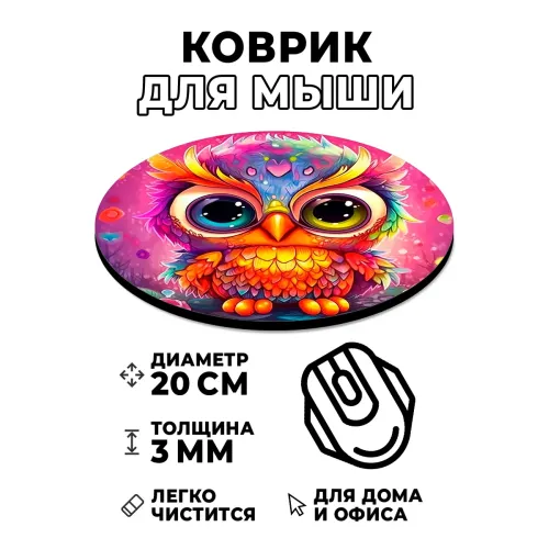 Коврик для компьютерной мыши круглой формы с изображением совёнка.
