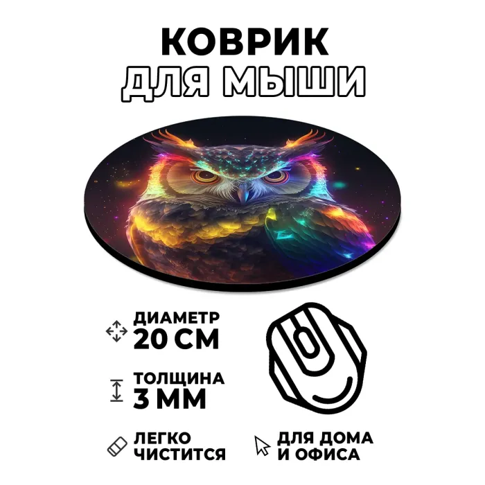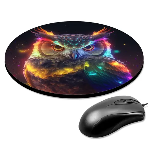 Коврик для компьютерной мыши круглой формы с изображением филина.