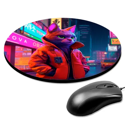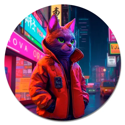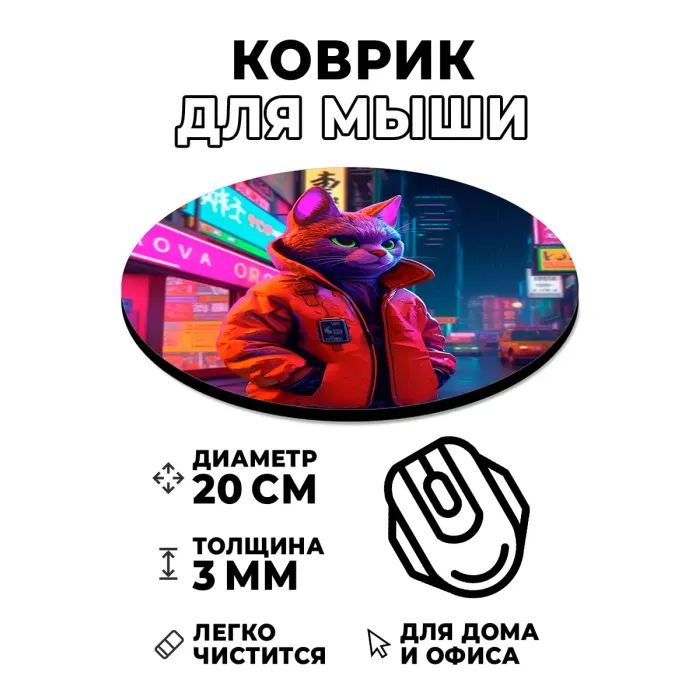Коврик для мыши Киберпанк кот, d.20см KM1048