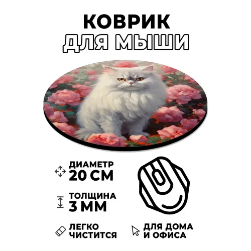 Коврик для мыши Кот и цветы, d.20см KM1049