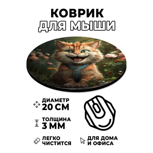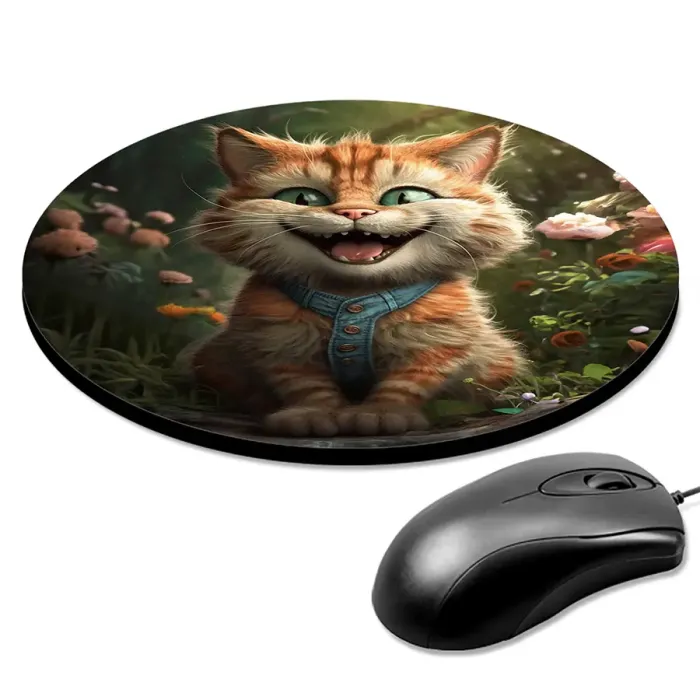 Коврик для компьютерной мыши круглой формы с изображением кота.