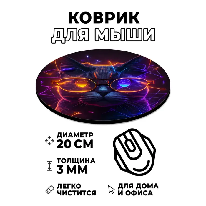 Коврик для мыши Кибер кот в очках, d.20см KM1063