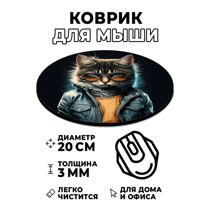 Коврик для компьютерной мыши круглой формы с полноцветным изображением.