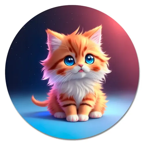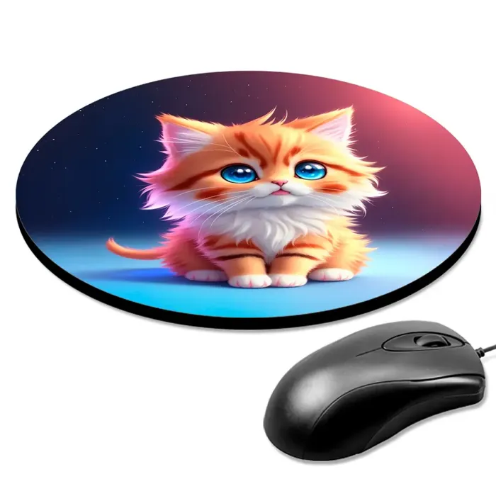 Коврик для компьютерной мыши круглой формы с изображением котёнка.