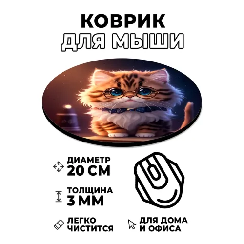 Коврик для мыши Котенок в очках, d.20см KM1073
