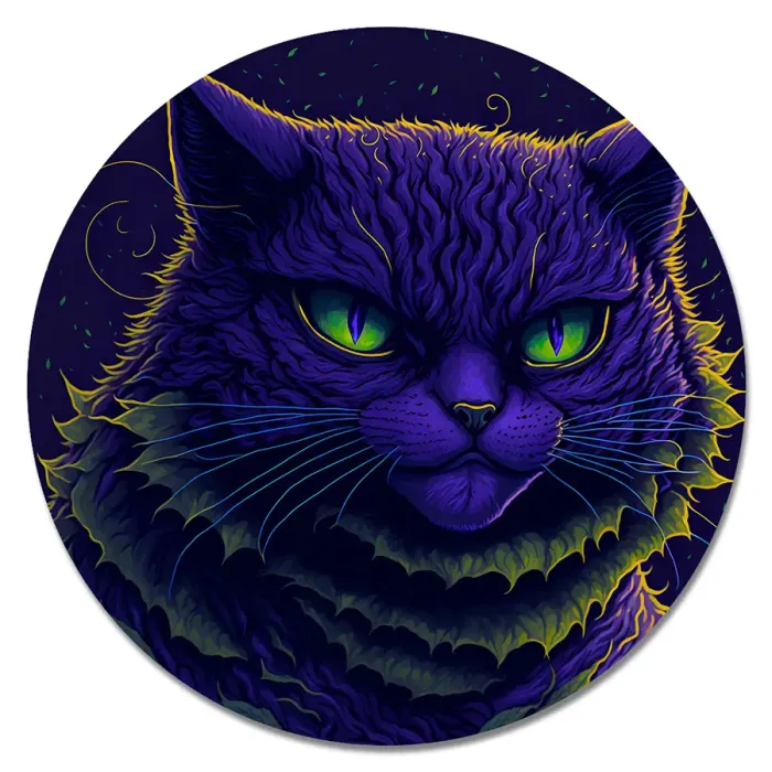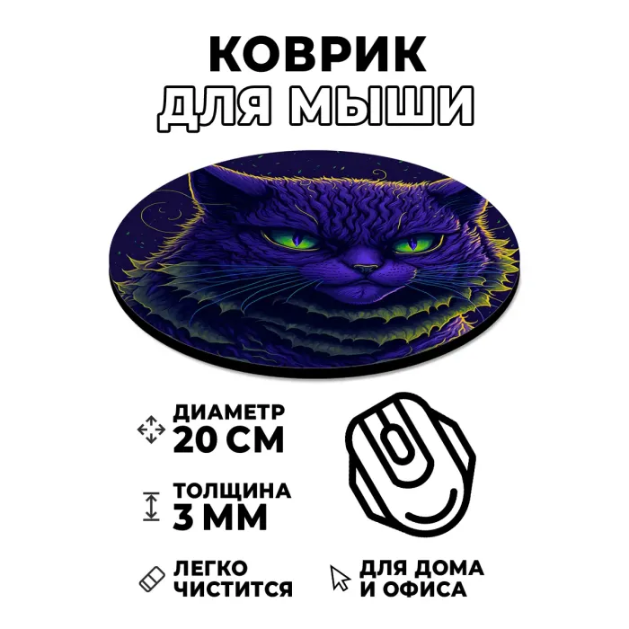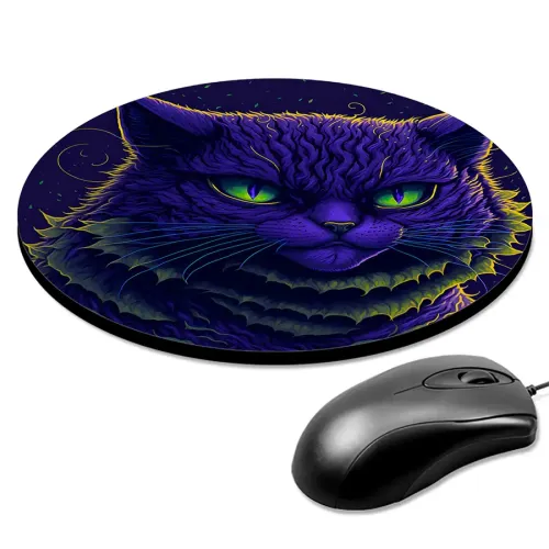 Коврик для компьютерной мыши круглой формы с изображением угрюмого кота.