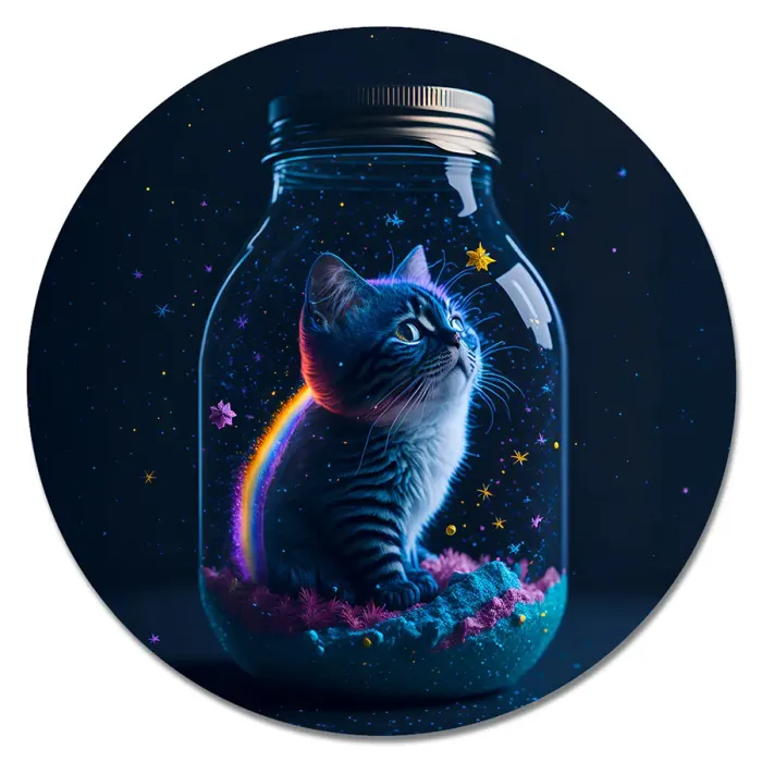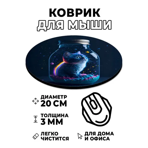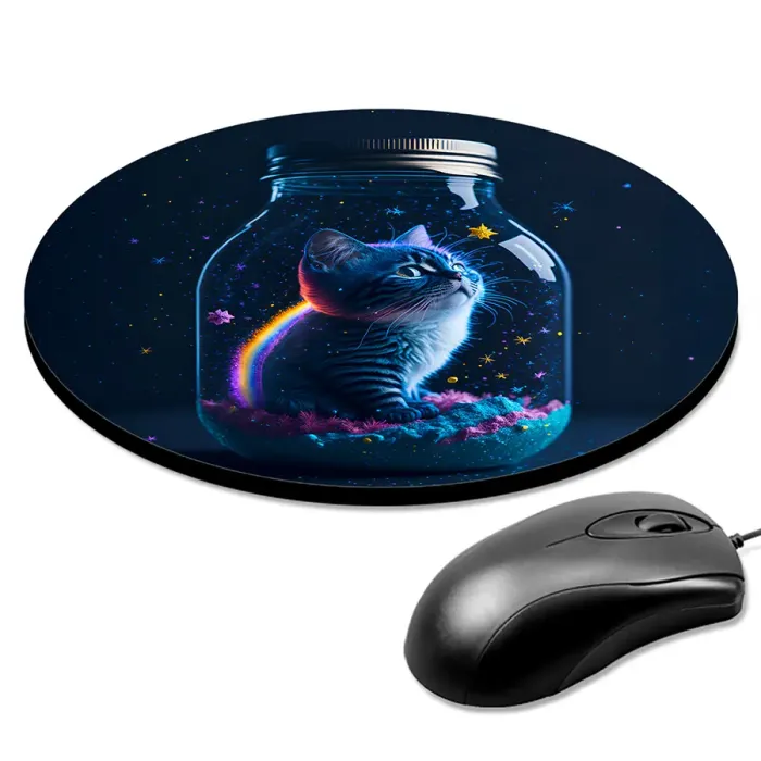 Коврик для компьютерной мыши круглой формы с изображением котёнка в банке.