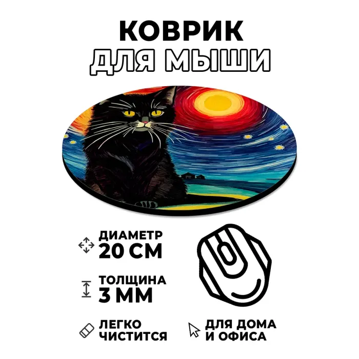 Коврик для мыши Кот Ван Гог, d.20см KM1076
