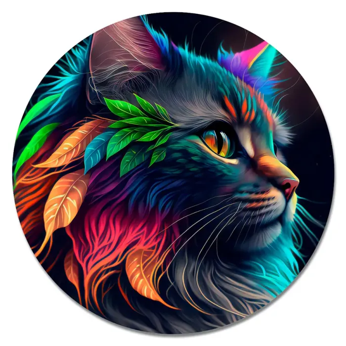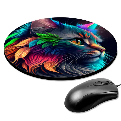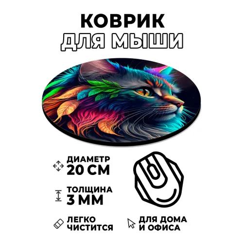 Коврик для компьютерной мыши круглой формы с изображением лесного кота.