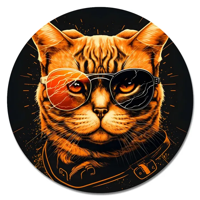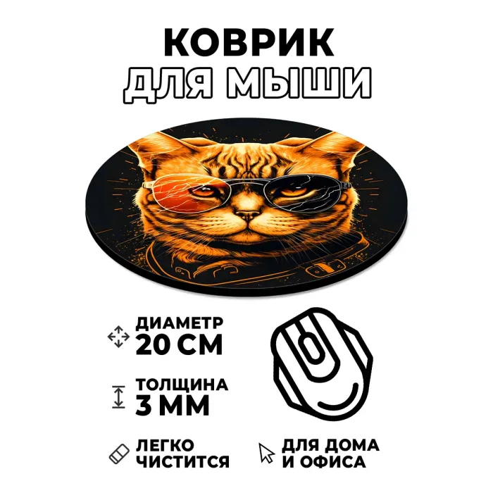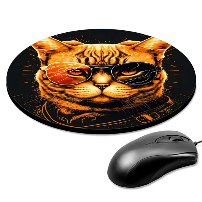 Коврик для компьютерной мыши круглой формы с полноцветным изображением кота.