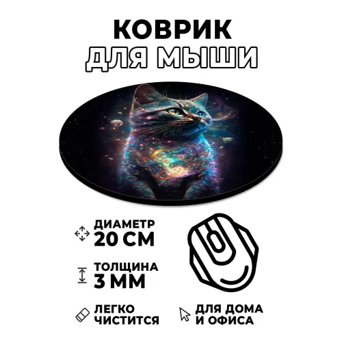 Коврик для мыши Кот космос, d.20см KM1090