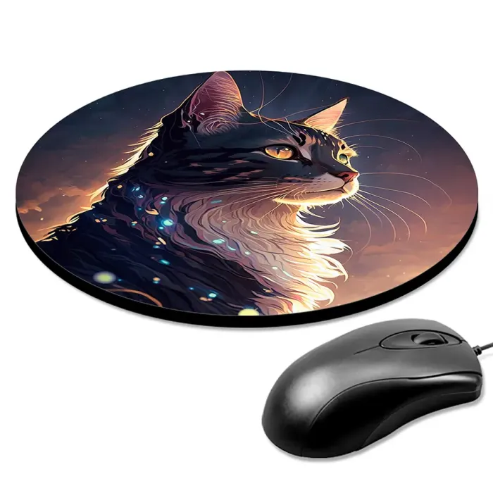Коврик для компьютерной мыши круглой формы с полноцветным изображением кошки.
