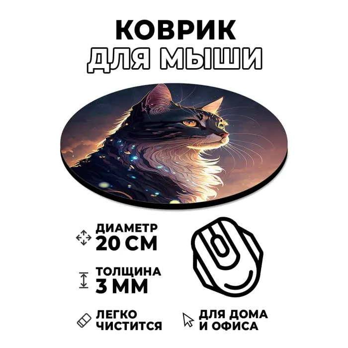 Коврик для мыши Кошка на рассвете, d.20см KM1093