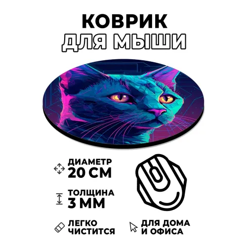 Коврик для мыши Полигональная кошка, d.20см KM1098