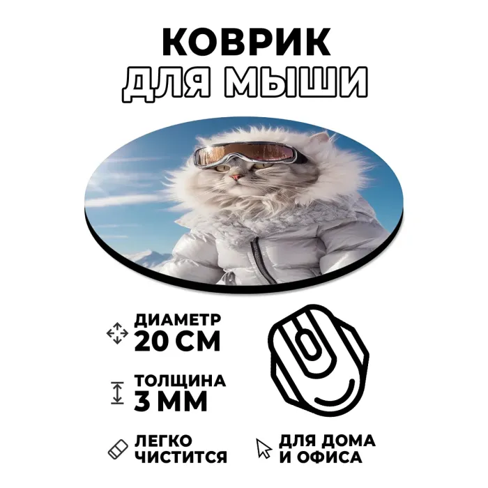 Коврик для мыши Кот на зимнем курорте, d.20см KM1099