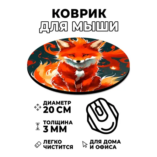 Коврик для мыши Огненная лиса, d.20см KM1103