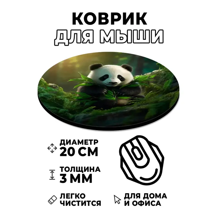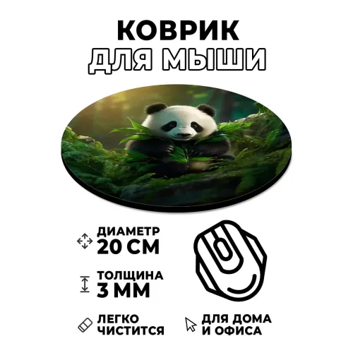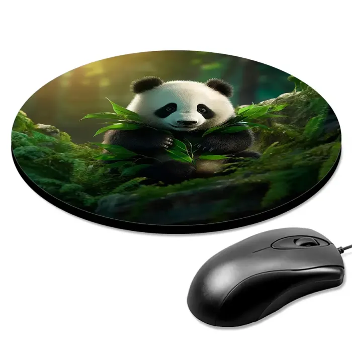 Коврик для мыши с круглой основой и изображением панды.