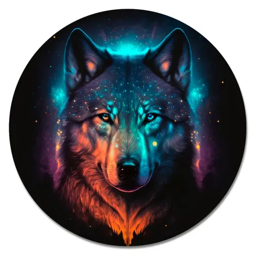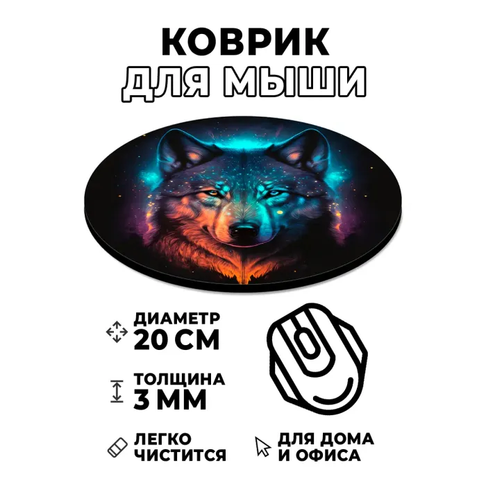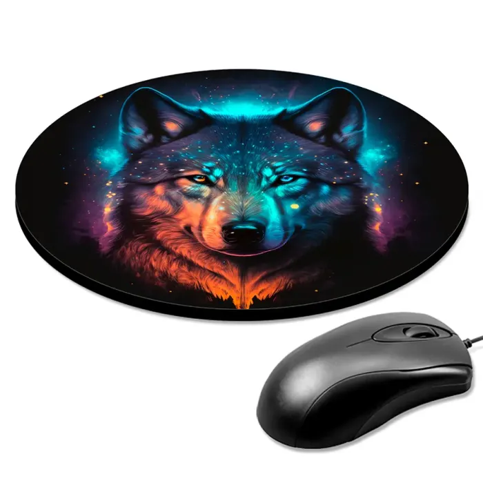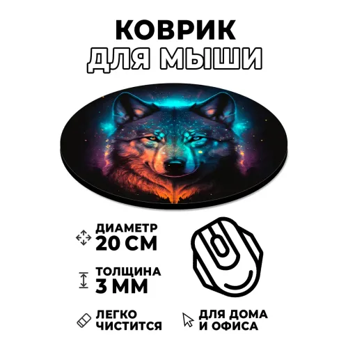 Коврик для компьютерной мыши круглой формы с изображением волка.