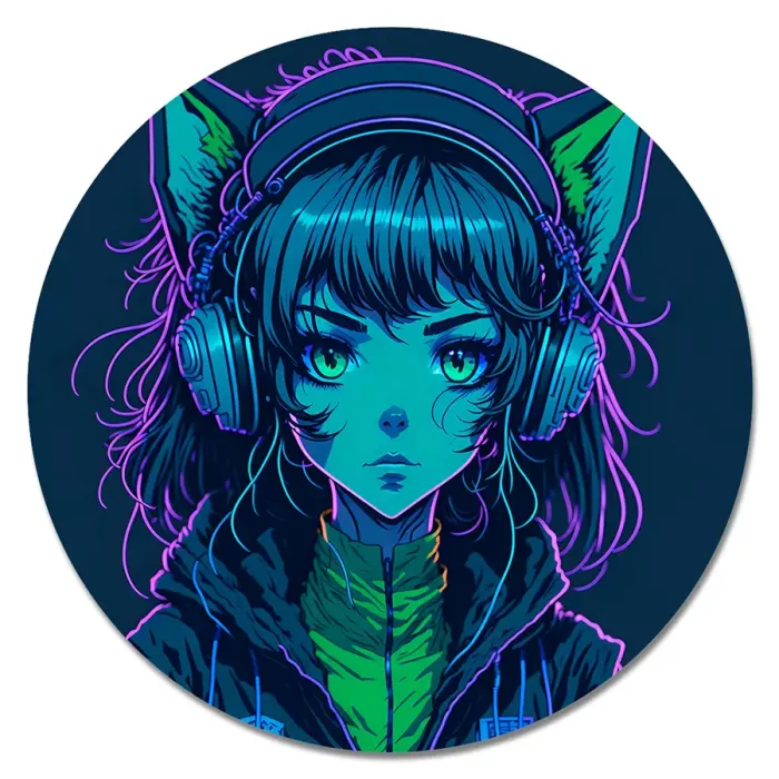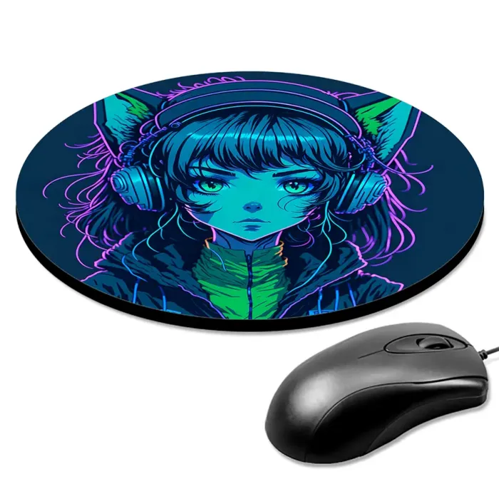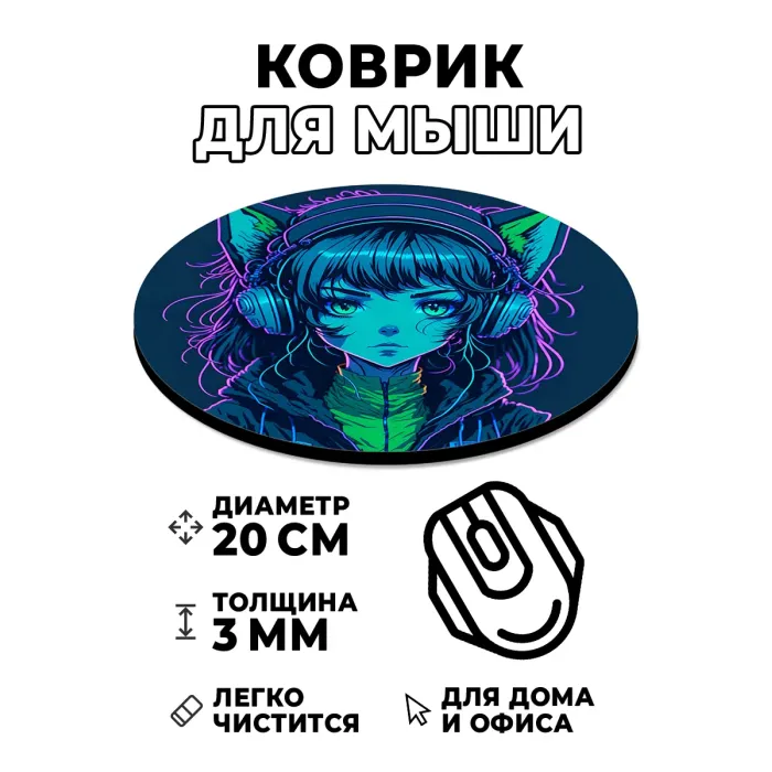 Коврик для мыши Аниме девушка неко в наушниках, d.20см KM1121