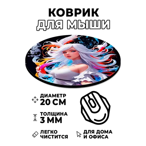 Коврик для мыши Девушка с белыми волосами, d.20см KM1126
