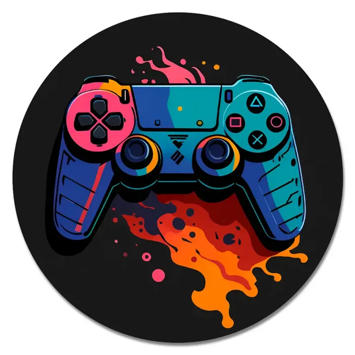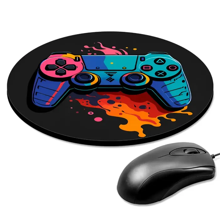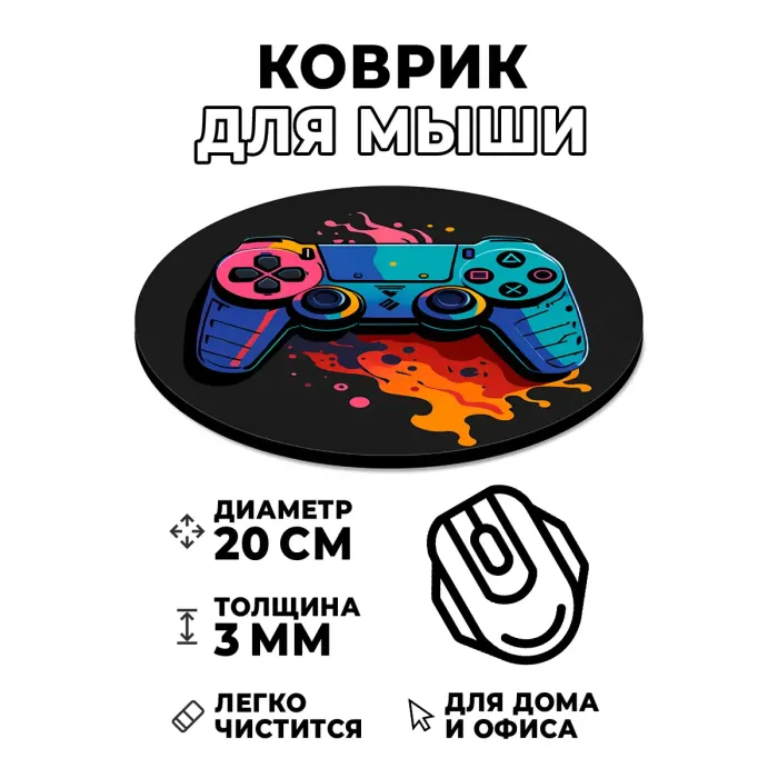 Коврик для компьютерной мыши круглой формы с изображением геймпада.