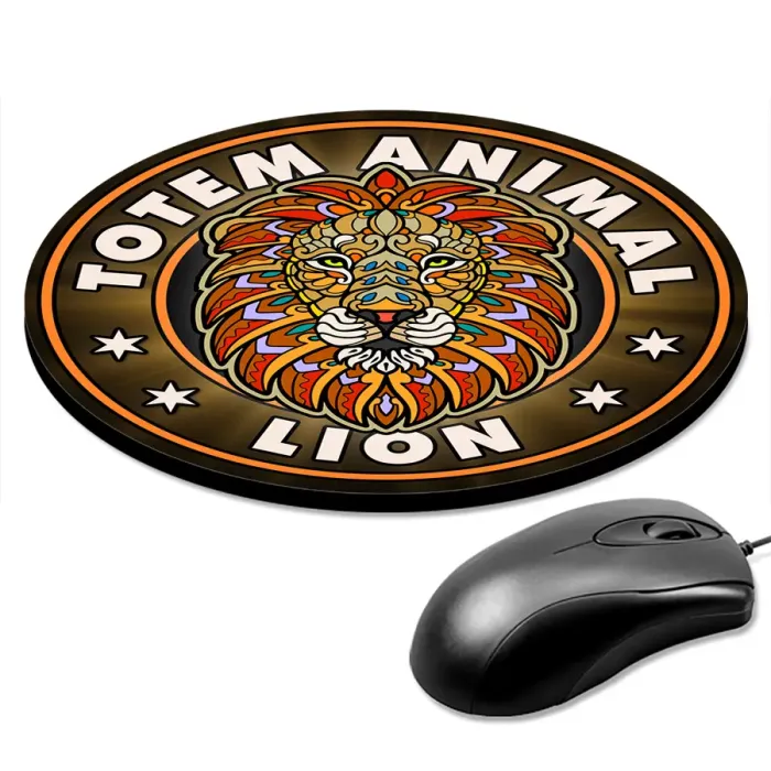 Коврик для компьютерной мыши круглой формы с изображением льва.